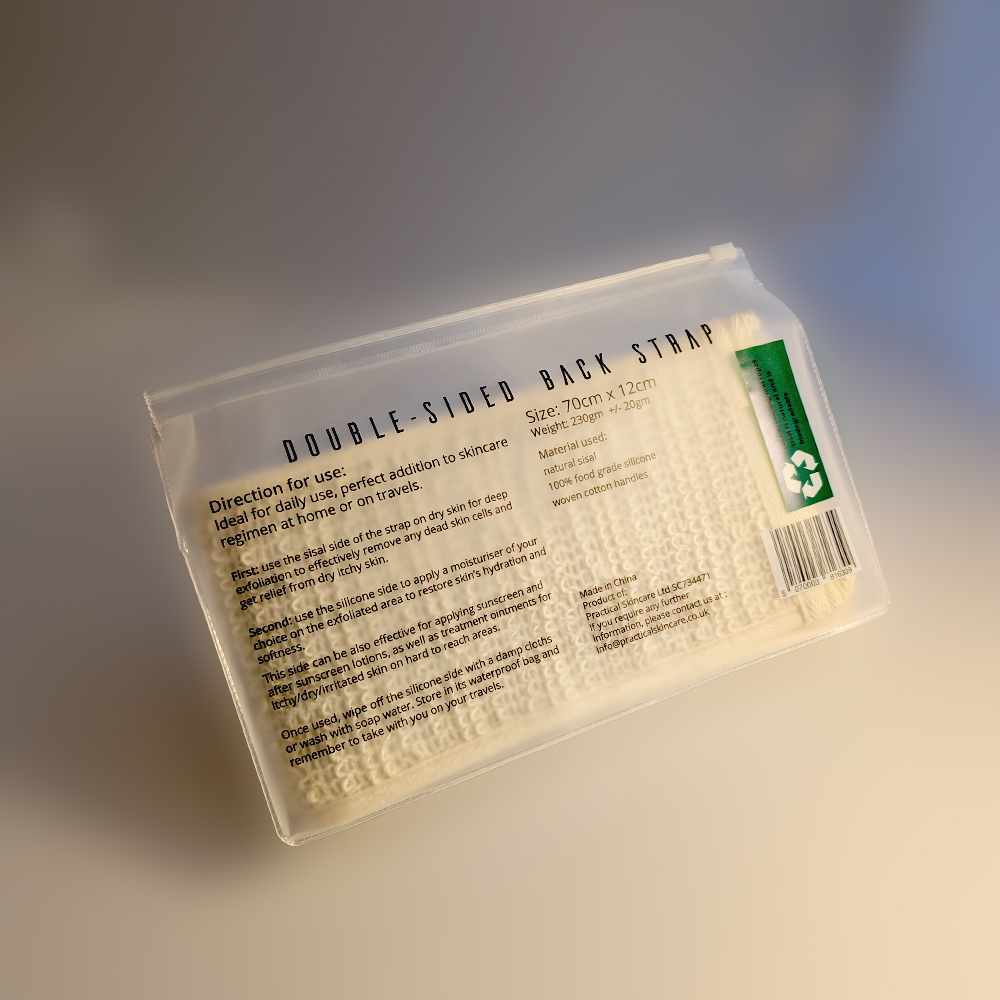 First: use the sisal side of the strap on dry skin for deep exfoliation to effectively remove any dead skin cells and get relief from dry itchy skin.